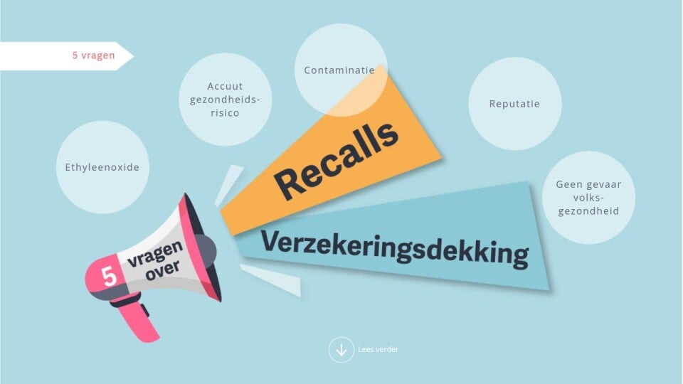 waarschuwing uit zodat alle verontreinigde producten uit de markt worden gehaald. Janine Hendriks-Kloet van verzekeraar HDI Global Specialty SE legt uit wat de gevolgen zijn op verzekeringsgebied: ‘Product Contaminatie Verzekeringen (CPI) dekken geen ethyleenoxide schades, omdat deze stof op de lijst staat van kankerverwekkende stoffen. De polis sluit iedere toevallige contaminatie of terugroepactie uit die ontstaat uit een kankerverwekkende stof.’
