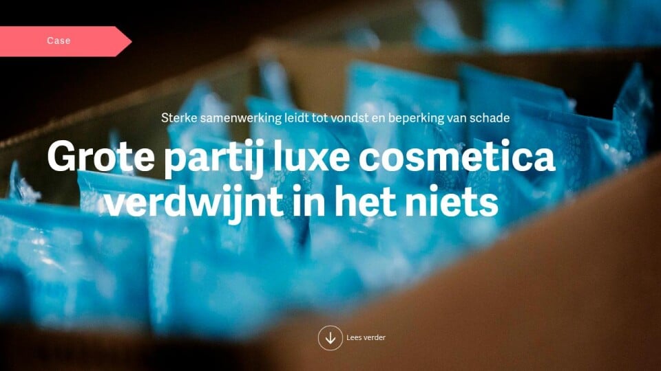 Een listige truc waarbij een grote partij cosmetica wordt gestolen. Met forse schade als gevolg. Klant, politie, Meijers, verzekeraar en expertisebureau zetten er gezamenlijk de schouders onder. Hoe vind je gestolen waar terug? Hoe beperk je de schade? En wat zijn de lessons learned?