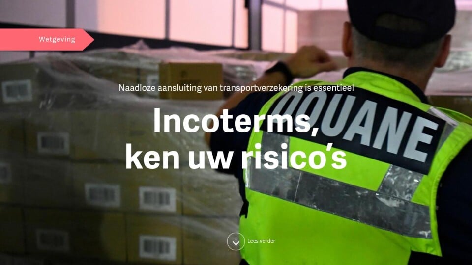 Incoterms zijn de standaardafspraken voor internationaal handelsverkeer, waarin verplichtingen, risico’s en kosten tussen koper en verkoper zijn vastgelegd. In 2020 zijn de Incoterms aangepast om nog beter aan te sluiten op de behoeften van kopers en verkopers. Het gaat bijvoorbeeld om de vraag wie op welk moment verantwoordelijk is voor transport, verzekering en douaneformaliteiten. Het is belangrijk om mogelijke (financiële) risico’s die dit met zich meebrengt goed te kennen én afdoende te verzekeren.