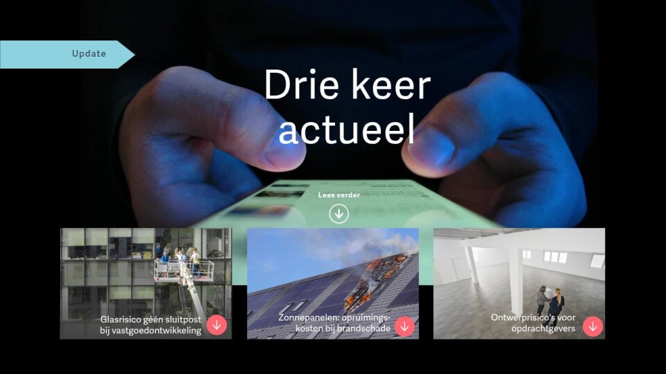 Britink pleit voor betrokkenheid van de verzekeraar en intermediair in risicomanagement vanaf de eerste ontwerpfase. ‘Glasrisico is namelijk géén sluitpost bij vastgoedontwikkeling, integendeel. Je moet er vooraf weloverwogen keuzes over maken, zodat je achteraf niet onaangenaam wordt verrast. Neem als voorbeeld moderne glaspartijen met gebogen glas. Die worden vaak met speciale mallen gemaakt in verre landen. Dat maakt reparatie of vervanging kostbaar en maakt dat levering en dus schadeherstel lang kan duren.’