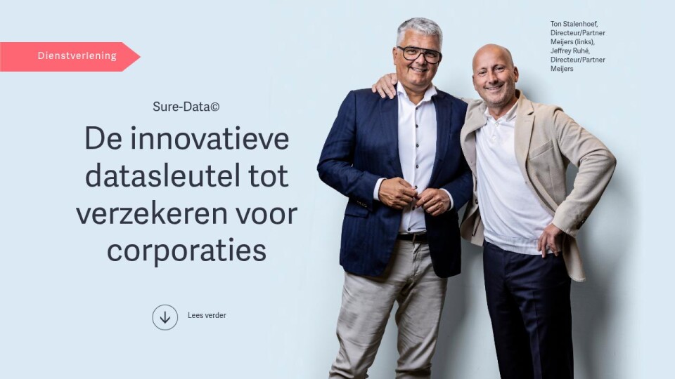 Sure-Data© is hiervoor dé innovatieve oplossing. Deze dataservice, ontwikkeld in samenwerking met Infofolio, verzamelt en verwerkt gegevens vanuit diverse bronnen. Op basis daarvan biedt Sure-Data© een compleet overzicht met sleutelinformatie, waarmee woningcorporaties beter onderbouwd de onderhandelingstafel betreden bij het afsluiten van verzekeringen. Ton Stalenhoef, directeur Vastgoed bij Meijers, zegt hierover: ‘We zijn trots dat we de eerste makelaar zijn die een oplossing heeft ontwikkeld om de verzekerbaarheid van het vastgoed van corporaties te blijven bieden.’ Ids Menssink van Infofolio vult aan: ‘Wij hebben een jarenlange expertise in digitale data voor commercieel vastgoed. Het was een leuke uitdaging om deze kennis specifiek te vertalen naar een nieuwe service voor woningcorporaties.’